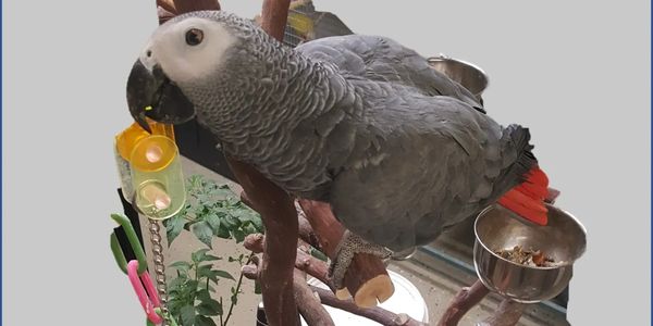 A Congo African Grey, playful and talkative, smart and sometimes onery, Pancho is a bachelor resident of Birds Anonymous. Despite declining vision since hatching, Pancho has made himself useful in the aviary by giving his aviary-mates entertaining feats of acrobatics, mimicry and ventriloquism.